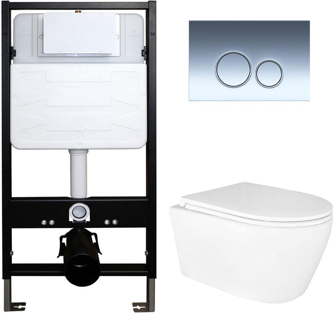 Инсталляция с подвесным унитазом комплект: Azario Forte AZ-100-100F с подвесным безободковым унитазом Uno AZ-2380 сиденье микролифт, кнопка смыва хром AZ-100-030F