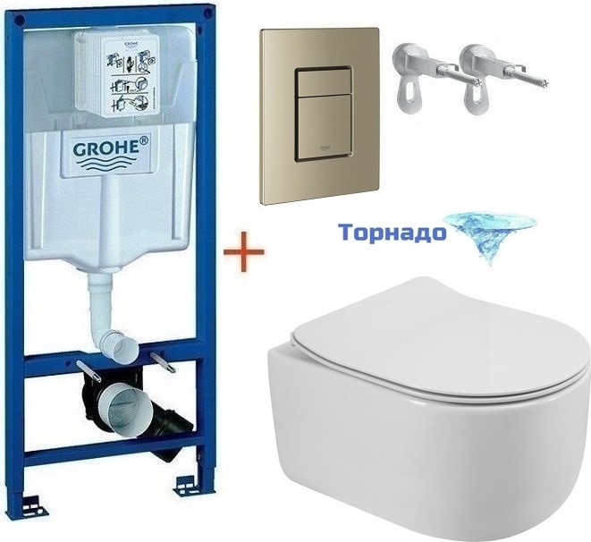 Инсталляция с подвесным унитазом комплект: Grohe Rapid SL с подвесным безободковым унитазом BelBagno Soft-Tor BB084CH-TOR/SC сиденье микролифт, крепление, кнопка смыва никель