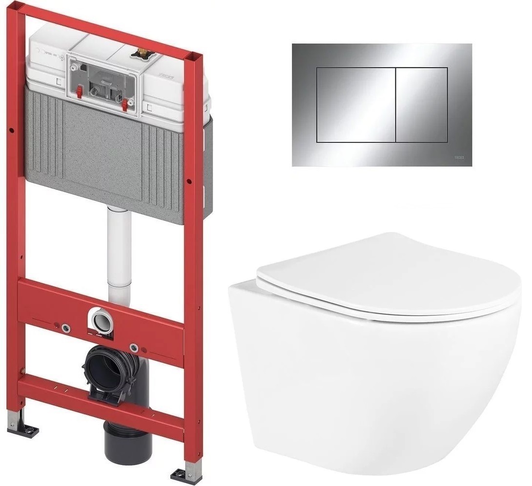 Инсталляция с подвесным унитазом комплект: TECEbase 2.0 9400412 с подвесным безободковым унитазом BelBagno Uno BB3105CHR/SC сиденье микролифт, крепление, кнопка смыва хром глянцевый