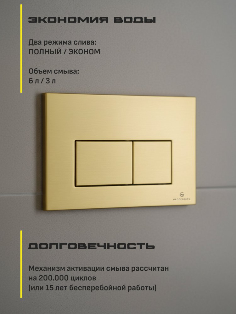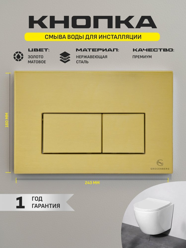 - Кнопка смыва для унитаза GROCENBERG KM3070MG — это не просто элемент сантехники, это настоящее украшение вашей ванной комнаты! Матовое золото придаёт изысканность и роскошь, делая интерьер стильным и элегантным.