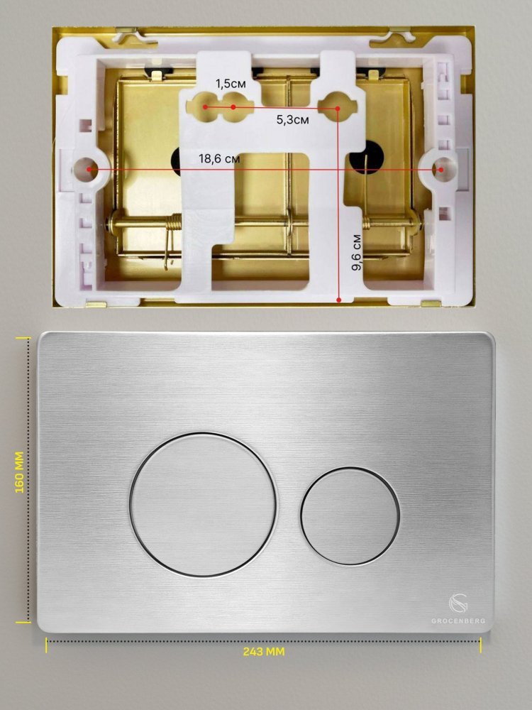 - Кнопка смыва для унитаза GROCENBERG KM3090NK — это не просто кнопка, это заявление о вашем безупречном вкусе и стремлении к совершенству! Изготовленная из прочного металла и покрытая сияющим никелем, она станет настоящим украшением вашей ванной комнаты.