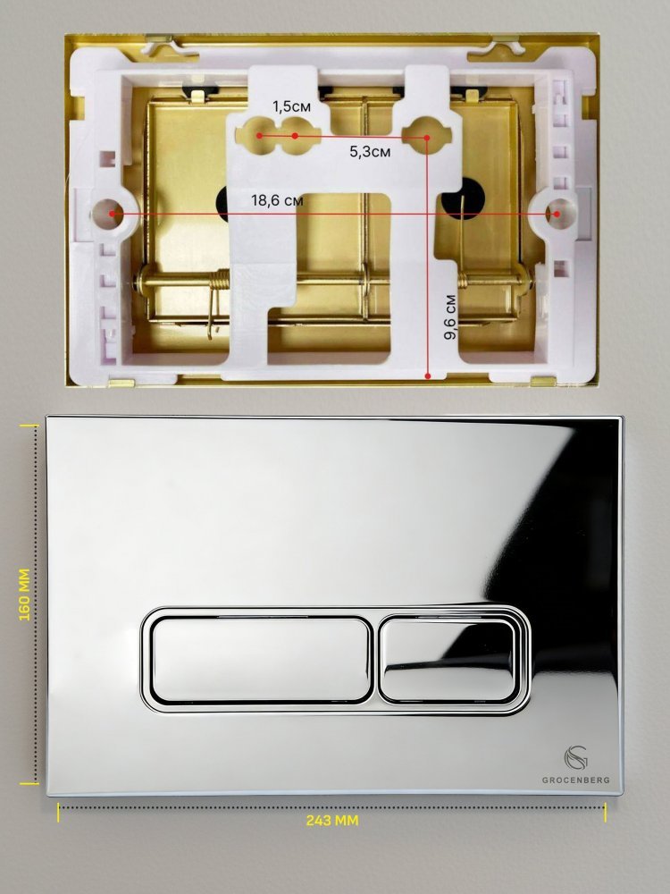 - Благодаря своей простоте и удобству в использовании, эта кнопка смыва сделает вашу повседневную жизнь ещё более комфортной. Наслаждайтесь каждым моментом с GROCENBERG KP3060CR — и пусть ваша ванная комната всегда будет наполнена уютом и комфортом!