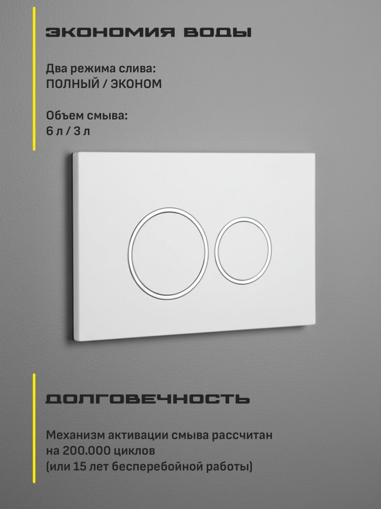 - Выполненная в классическом белом цвете, кнопка GROCENBERG станет гармоничным дополнением к любому дизайну ванной комнаты. Изготовленная из прочного пластика, она прослужит вам долгие годы, не теряя своего первозданного вида.