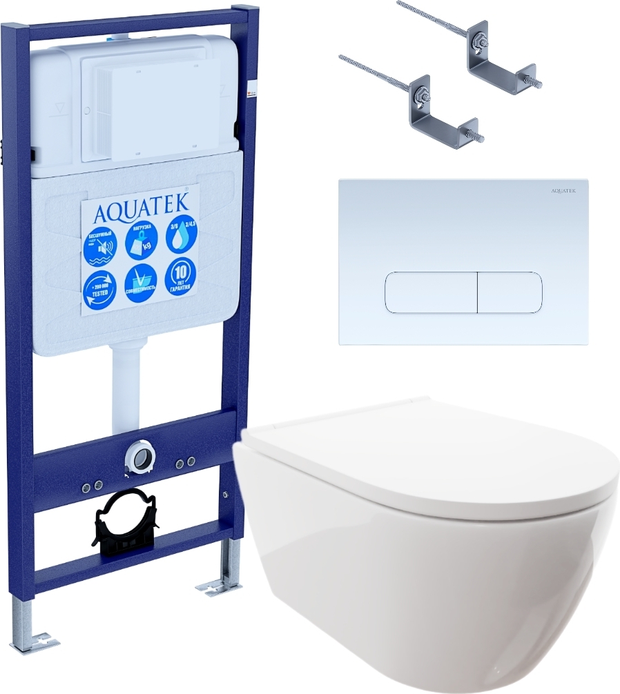 Комплект Aquatek: унитаз Поларис с микролифтом AQ0700-00, инсталляция Standart 50 INS-0000012, крепление, кнопка смыва Aquatek KDI-0000013 (белый) Set Поларис-013 4в1
