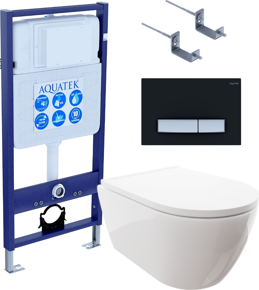 Комплект Aquatek: унитаз Поларис с микролифтом AQ0700-00, инсталляция Standart 50 INS-0000012, крепление, кнопка смыва Aquatek KDI-0000026 (черный матовый) Set Поларис-026 4в1