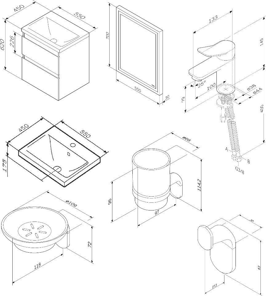 Характеристики тумба с раковиной,зеркало,комплект мебели AM.PM (BK85GO)