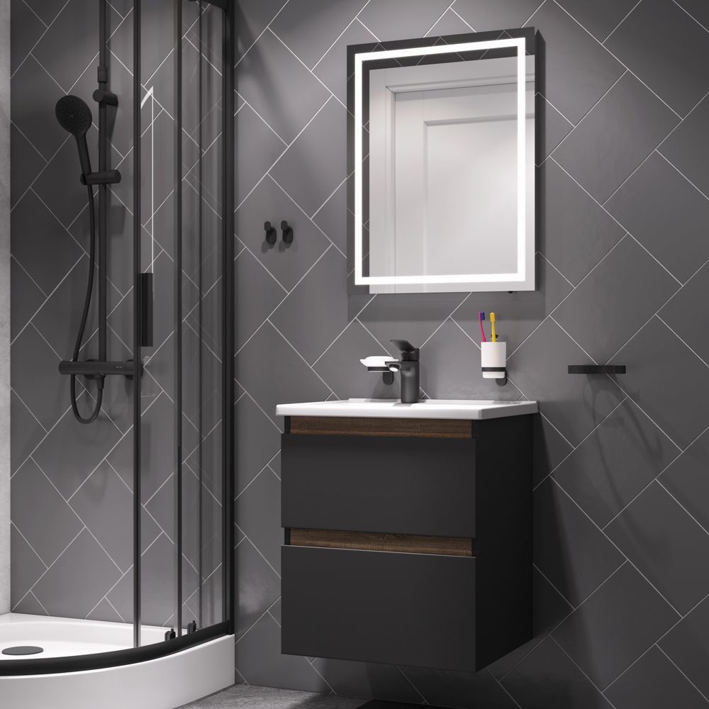 Комплект X-Joy – это самое эстетичное сочетание цветов и фактур: черные матовые фасады дополнены отделкой с фактурой под темное дерево. Смеситель и аксессуары идеально впишутся в современную ванную комнату и будут радовать глаз каждый день.