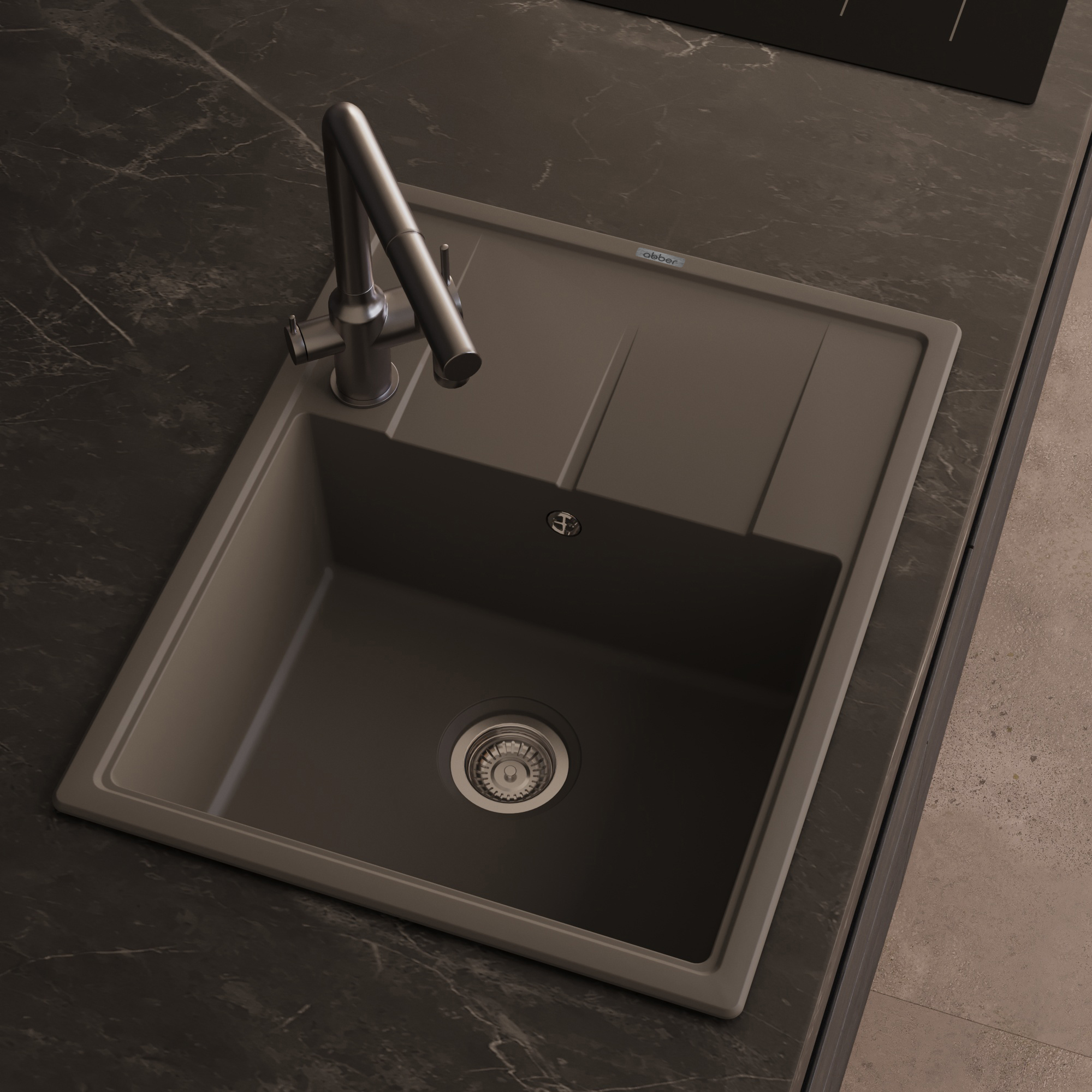 Кухонные мойки ABBER из кварцевого композита — это долговечность, надежность и простота в уходе. Серая кварцевая мойка 65х51х21,7см органично сочетается с любым стилем, от модерна до классики. Вы можете выбрать мойку с крылом или без. Чтобы очистить мойку, не нужно использовать какие-то специализированные средства. Кварцевая мойка не боится повреждений, не окрашиваются продуктами. Как натуральный камень, но лучше и дешевле!