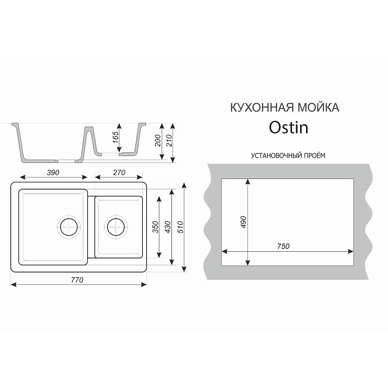 Врезная установка - способ установки, при котором в столешнице вырезается отверстие под размер мойки. Данный параметр подразумевает, что мойки будут устанавливаться поверх столешницы. Как правило размер отверстия под мойку на 2 см (20 мм) меньше внешнего размера мойки. Пример: Внешний размер мойки - 800х500 мм. Размер отверстия под данную мойку 780х480 мм.