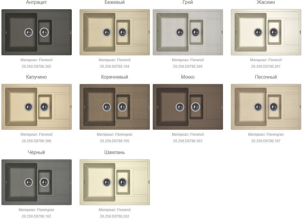 Кухонная мойка Florentina Липси 780K 20.250.D0780.302, материал искусственный камень. Цвет антрацит. Цвета моек в ассортименте.