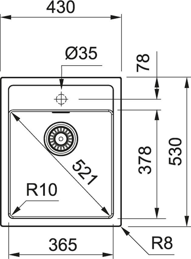 - модель укомплектована стоп-вентилем, оригинальный скрытый перелив под пластиной из нержавеющей стали с логотипом Franke.
