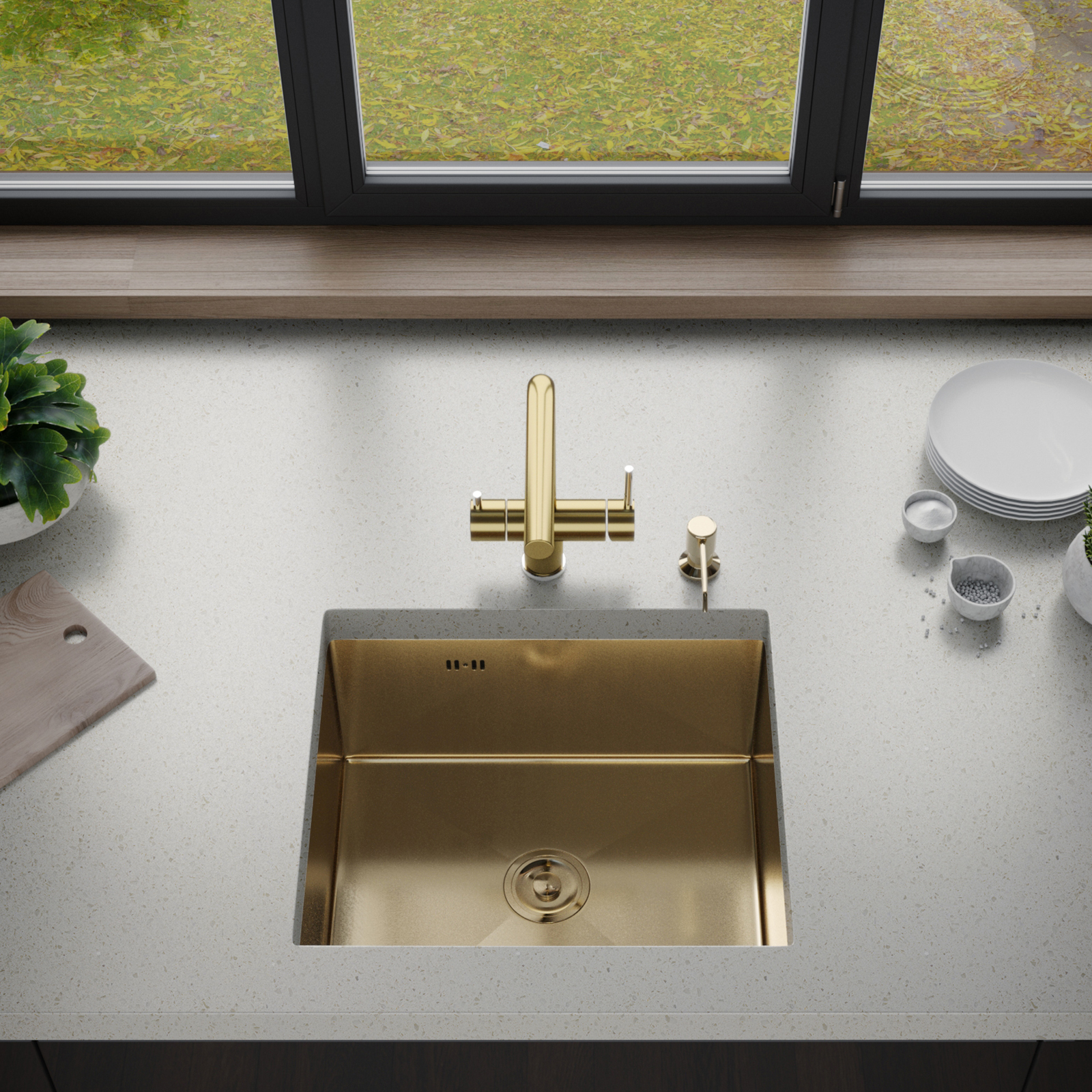 Кухонная мойка Gerhans 50х43см K35043G 3 мм, без отверстия под смеситель, с PVD покрытием, золото