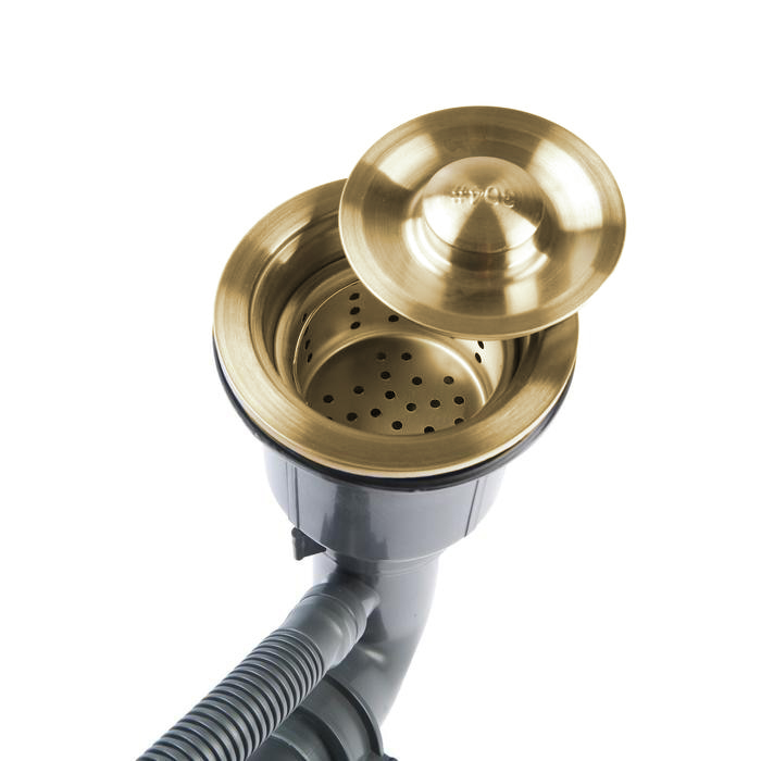 Кухонная мойка Gerhans K37851G-L. Изготовлена из нержавеющей стали, толщиной - 3 мм. Поверхность имеет PVD покрытие, устойчивое к механическим повреждениям и не требующее сложного ухода. Модель комплектуется сифоном.