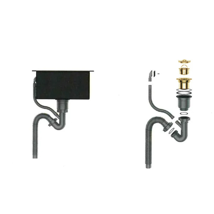 мойка, сифон, гибкий шланг для подключения к канализации, донный клапан, руководство по эксплуатации, гарантийный талон.