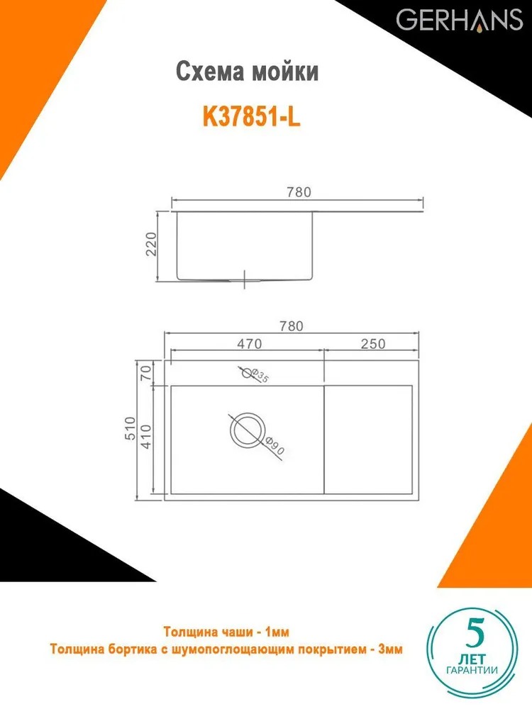Описание мойка для кухни Gerhans K37851-L
