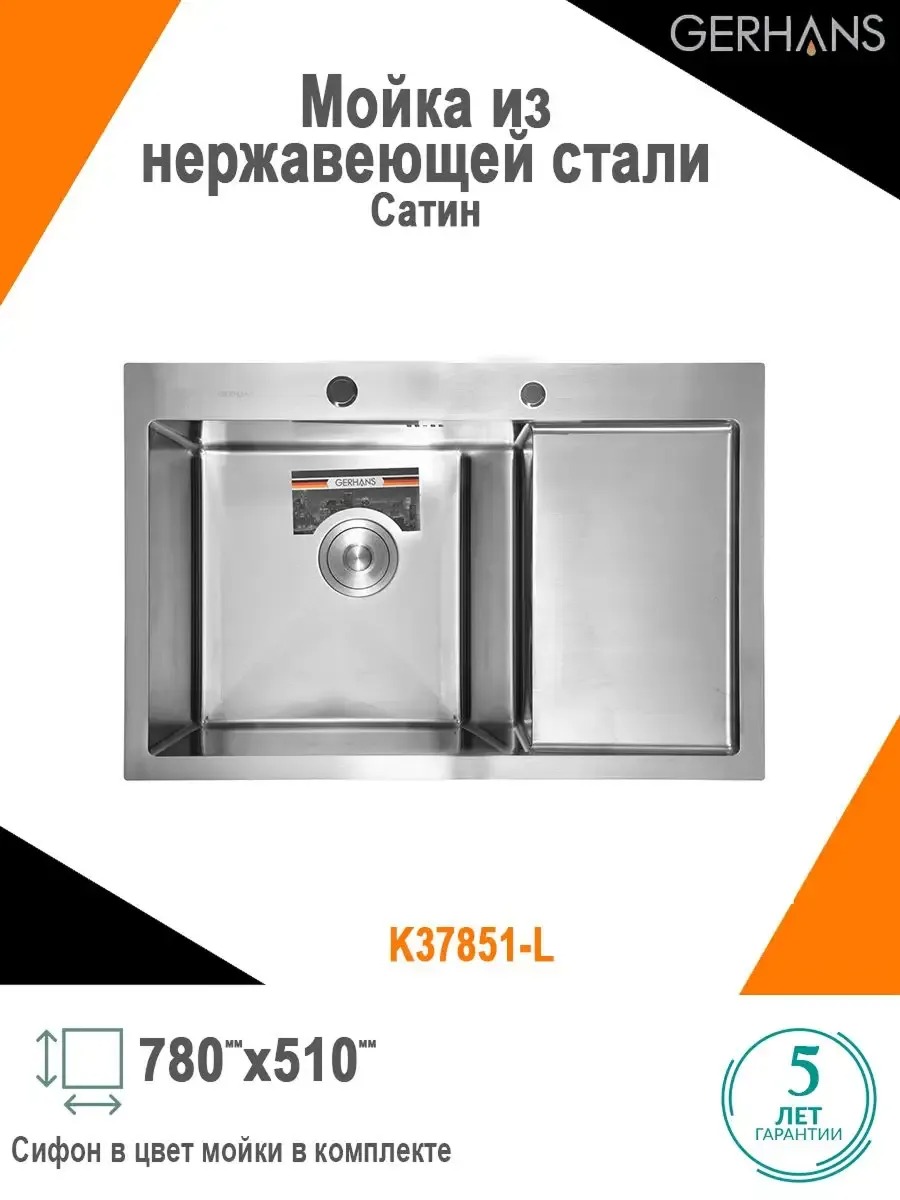Кухонная мойка Gerhans K37851-L, материал нержавеющая сталь. Цвет нержавеющая сталь.