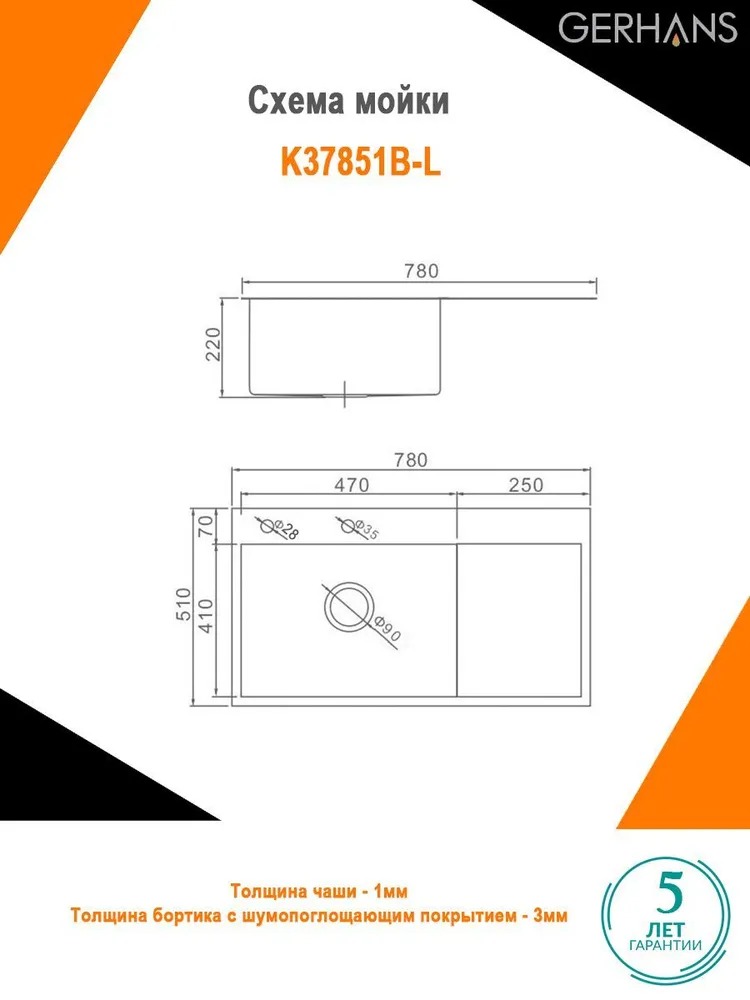 Характеристики мойка для кухни Gerhans (K37851B-L)