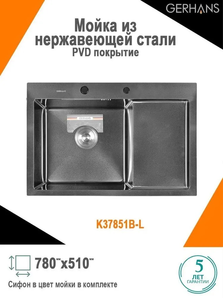 Кухонная мойка Gerhans K37851B-L 1 мм, PVD графит L