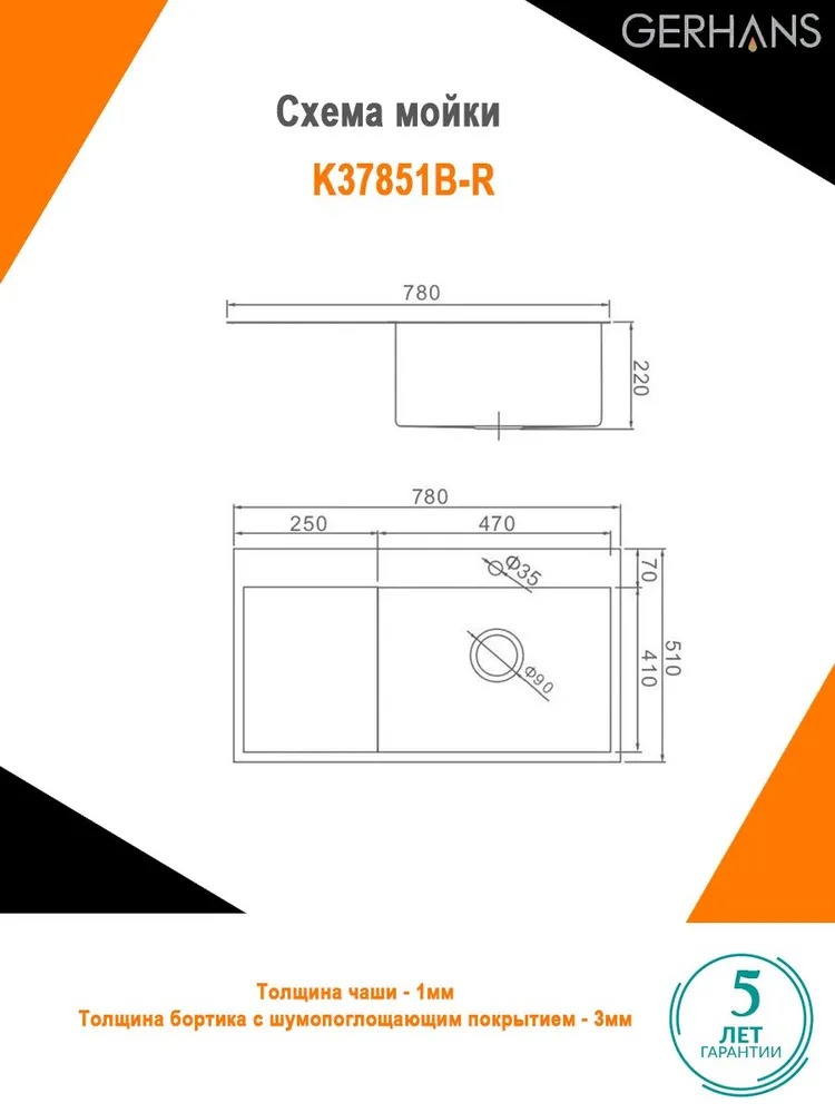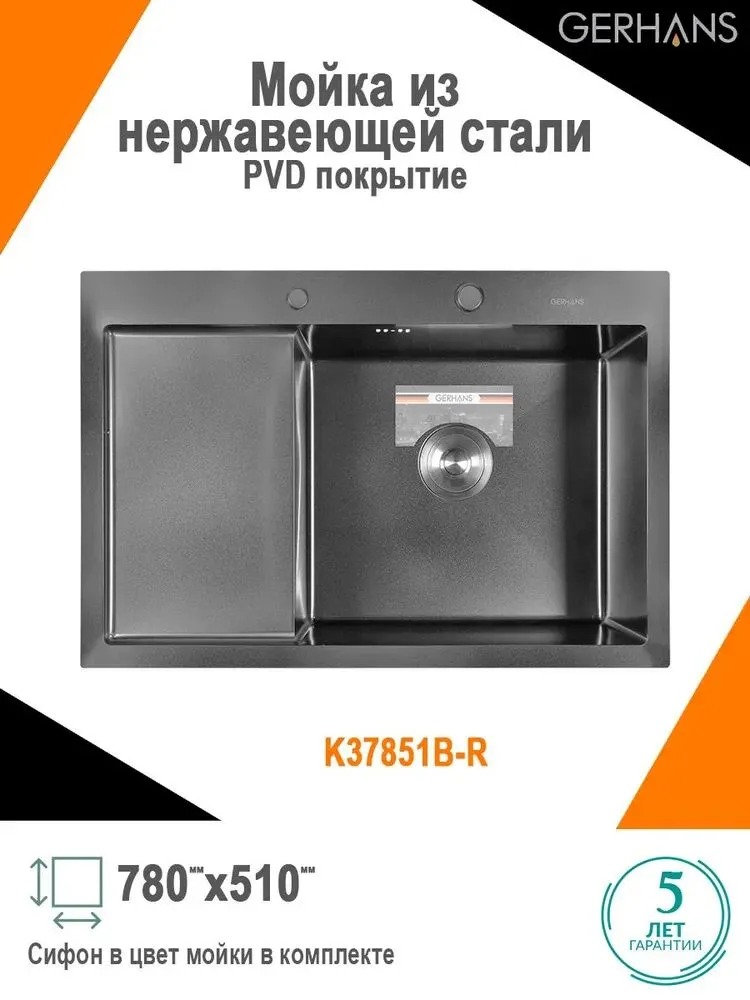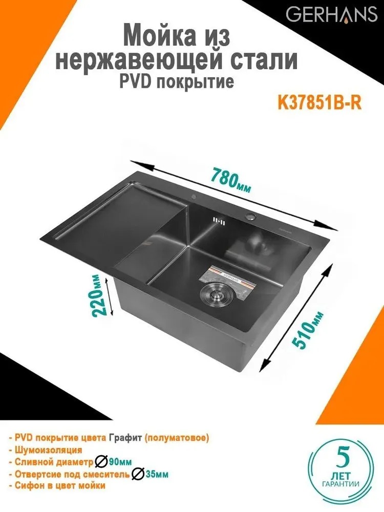 Описание мойка для кухни Gerhans K37851B-R