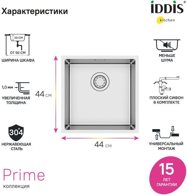 Характеристики мойка для кухни Iddis (PRI44S0i77)