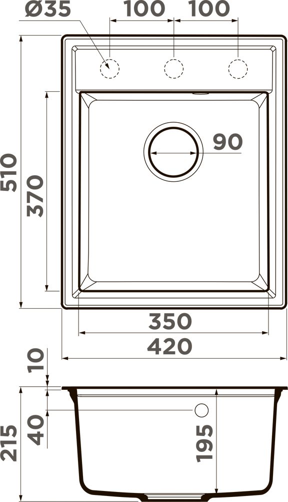 Врезная установка - способ установки, при котором в столешнице вырезается отверстие под размер мойки. Данный параметр подразумевает, что мойки будут устанавливаться поверх столешницы. Как правило размер отверстия под мойку на 2 см (20 мм) меньше внешнего размера мойки. Пример: Внешний размер мойки - 800х500 мм. Размер отверстия под данную мойку 780х480 мм.