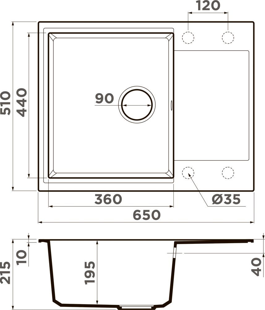 Врезная установка - способ установки, при котором в столешнице вырезается отверстие под размер мойки. Данный параметр подразумевает, что мойки будут устанавливаться поверх столешницы. Как правило размер отверстия под мойку на 2 см (20 мм) меньше внешнего размера мойки. Пример: Внешний размер мойки - 800х500 мм. Размер отверстия под данную мойку 780х480 мм.