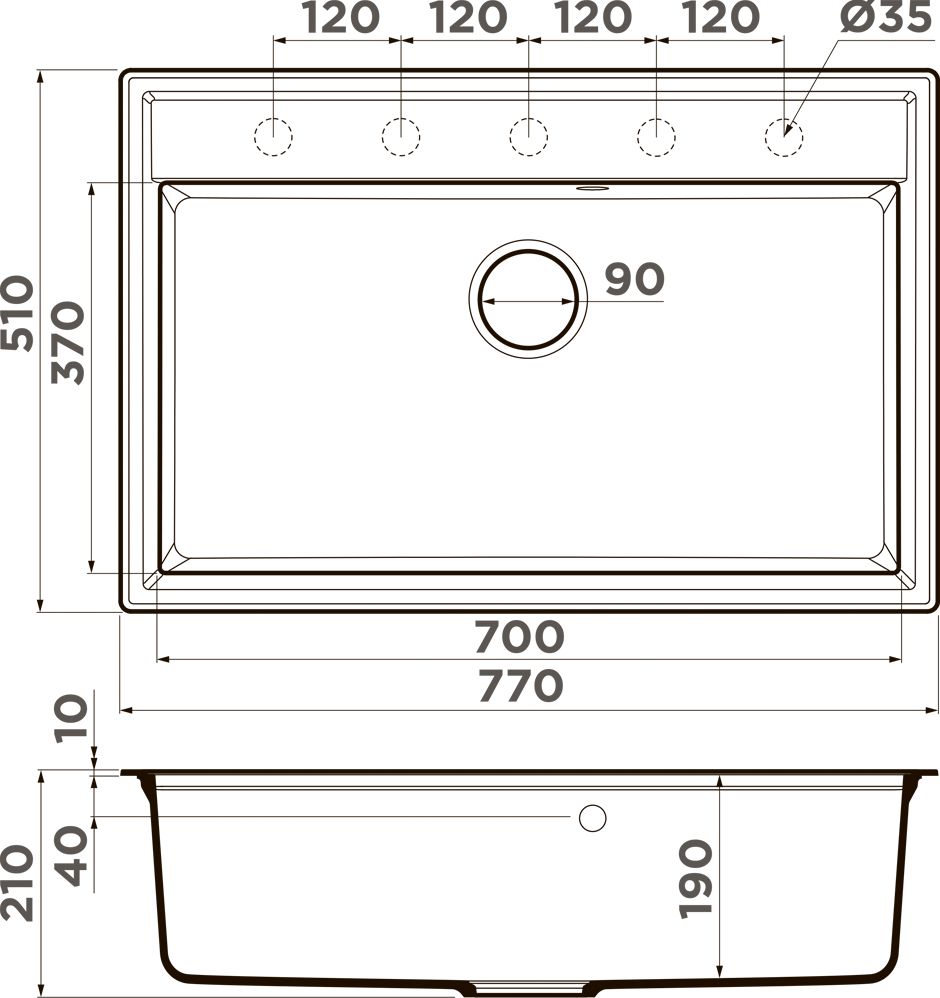 Врезная установка - способ установки, при котором в столешнице вырезается отверстие под размер мойки. Данный параметр подразумевает, что мойки будут устанавливаться поверх столешницы. Как правило размер отверстия под мойку на 2 см (20 мм) меньше внешнего размера мойки. Пример: Внешний размер мойки - 800х500 мм. Размер отверстия под данную мойку 780х480 мм.