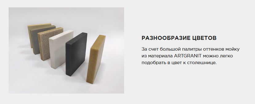 - В составе гранитных моек «Artgranit» пристутствуют специальные антибактериальные защитные комплексы с ионами серебра.