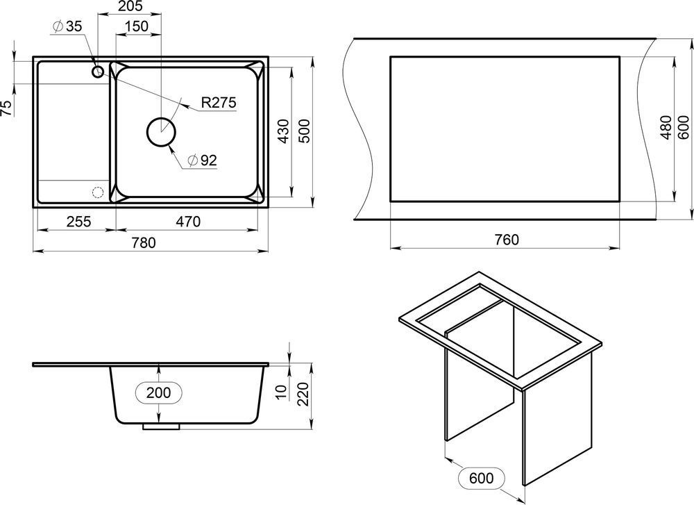 Врезная установка - способ установки, при котором в столешнице вырезается отверстие под размер мойки. Данный параметр подразумевает, что мойки будут устанавливаться поверх столешницы. Как правило размер отверстия под мойку на 2 см (20 мм) меньше внешнего размера мойки. Пример: Внешний размер мойки - 800х500 мм. Размер отверстия под данную мойку 780х480 мм.