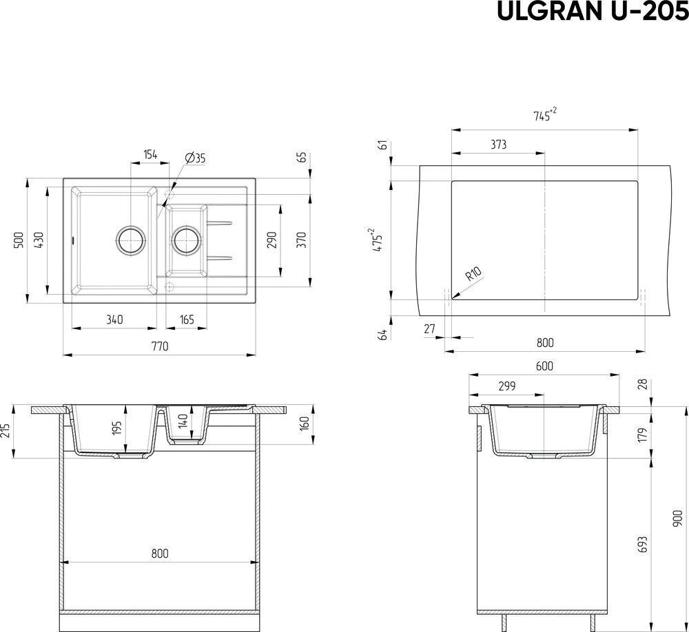 Характеристики мойка для кухни Ulgran (U-205-310)