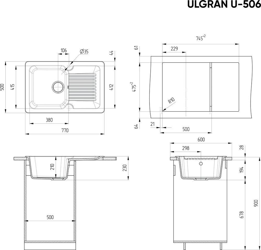 Характеристики мойка для кухни Ulgran (U-506-307)