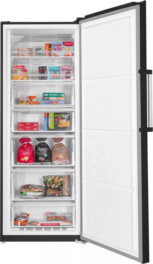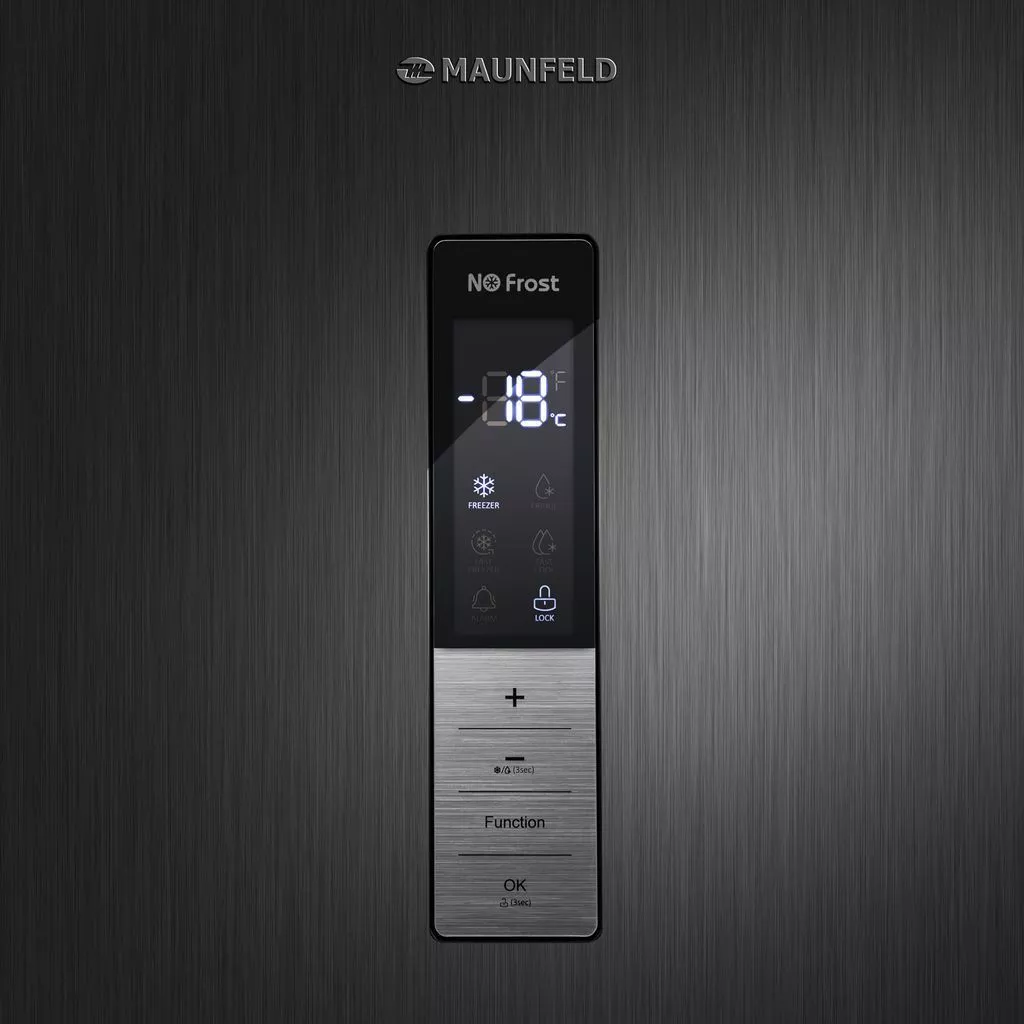 Морозильник Maunfeld MFFR185SB, система NoFrost, цвет чёрная нержавеющая сталь.
