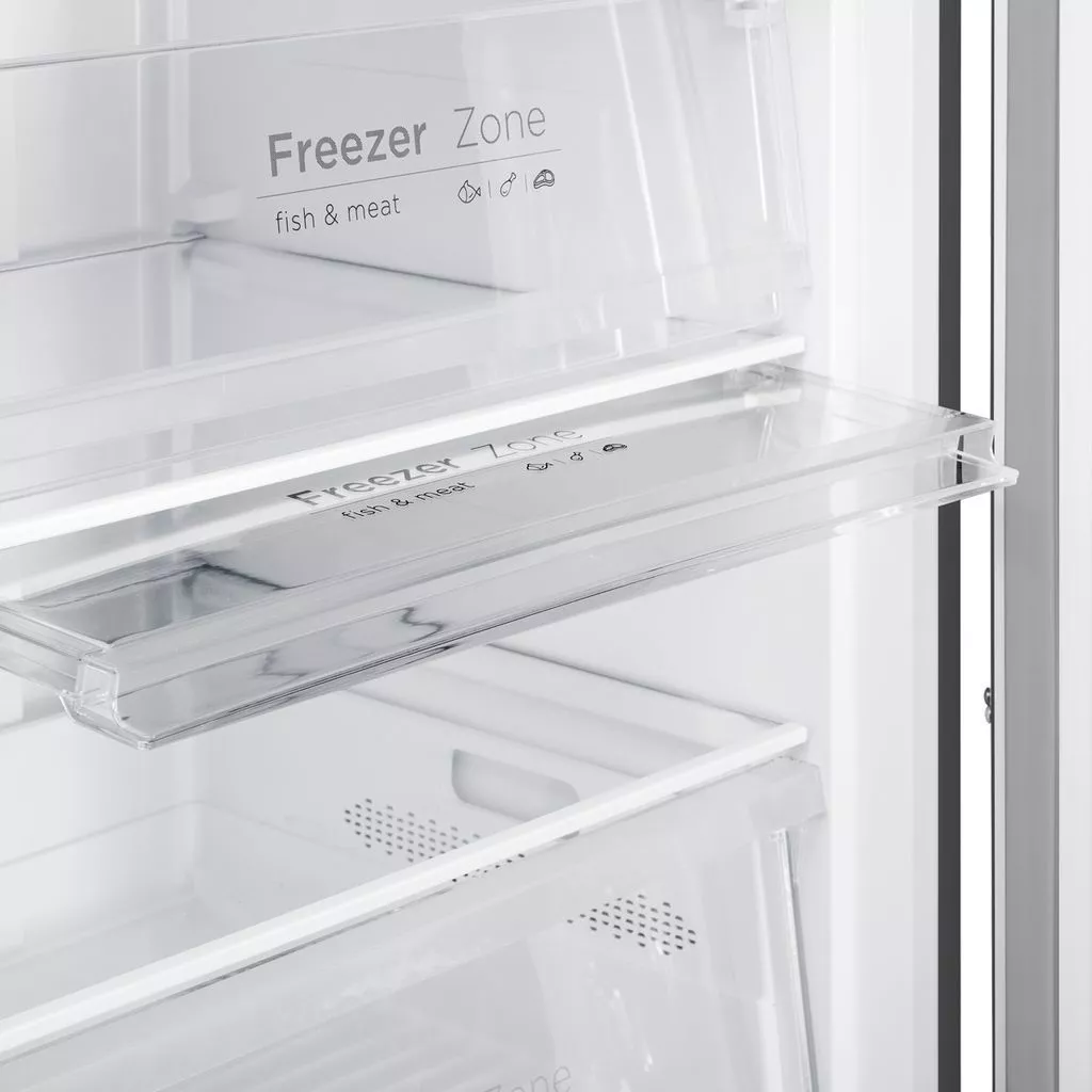 - Современный однокамерный морозильник-холодильник высотой 185 см и объемом 382 л.Для повышенного комфорта и удобства загрузки крупных продуктов и больших упаковок с полуфабрикатами созданы 2 специальных ящика Big Box увеличенного объема по 48л.