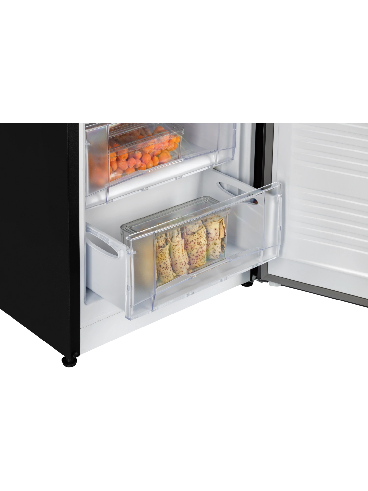 - Морозильник черного матового цвета с черной интегрированной ручкой и продуманным внутренним пространством станет стильным и технологичным акцентом на вашей кухне. Высота устройства 128 см. Для комфортного открытия и установки морозильника в удобном месте — дверь можно перенавесить с правой стороны на левую.