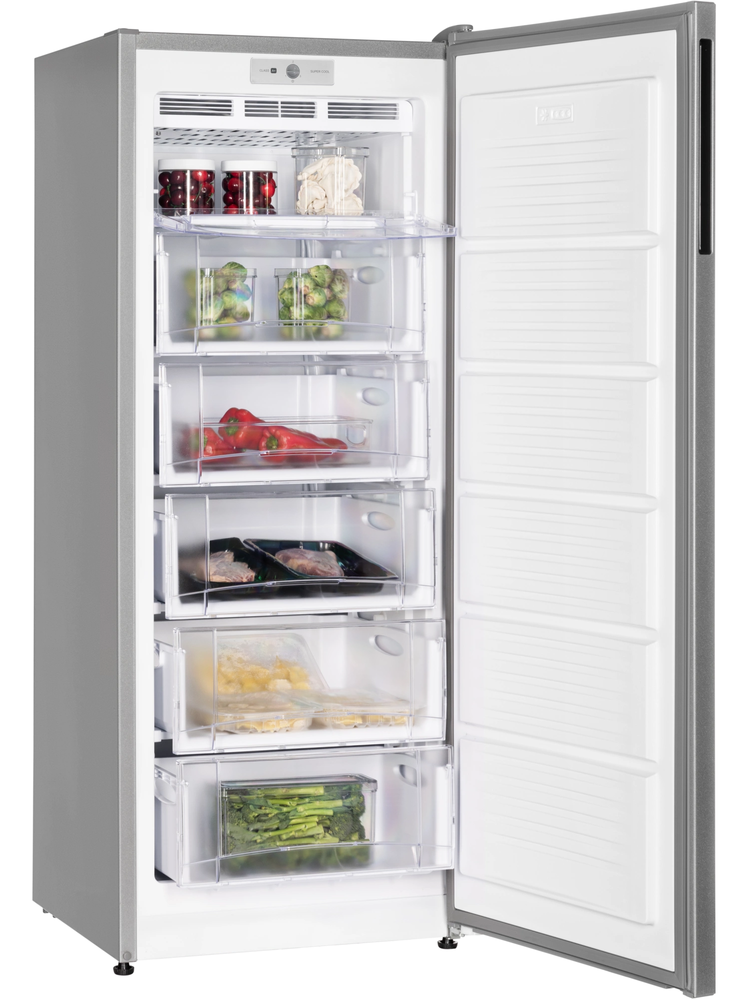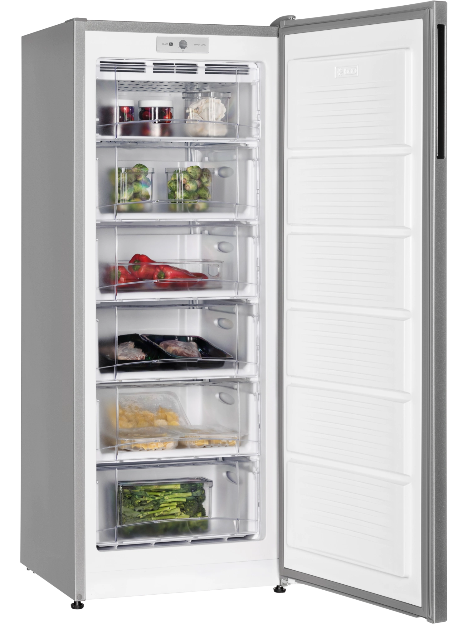 - Морозильник серебристого цвета с черной интегрированной ручкой и продуманным внутренним пространством станет стильным и технологичным акцентом на вашей кухне. Высота устройства 147 см. Для комфортного открытия и установки морозильника в удобном месте — дверь можно перенавесить с правой стороны на левую.