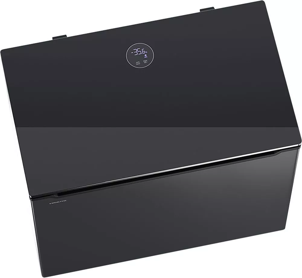 - Ларь с поверхностью двери из закаленного стекла отличается стильным эргономичным дизайном и удобством использования. Модель темно-серого цвета украсит интерьер любого помещения.