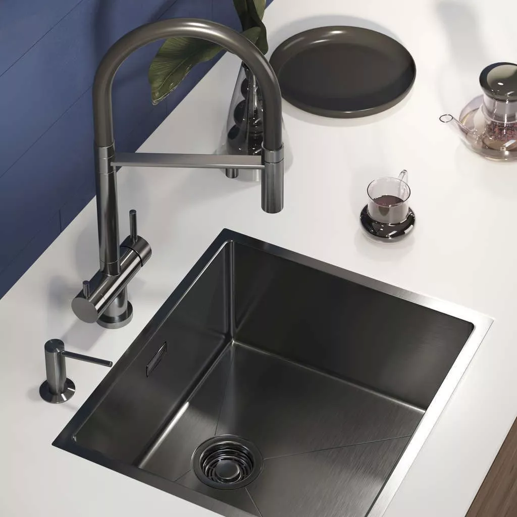 Мойка кухонная Omoikiri Taki 49-U/IF-GM с донным клапаном, материал нержавеющая сталь, цвет вороненая сталь.
