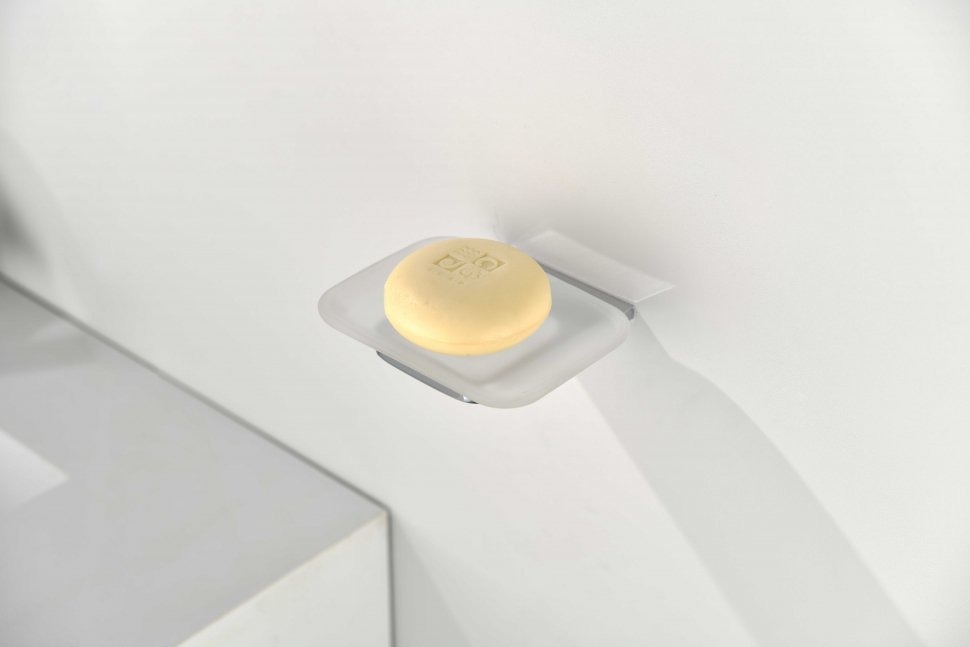 Мыльница Grocenberg AC0058CR, с настенным держателем, материал латунь/стекло матовое, цвет хром.