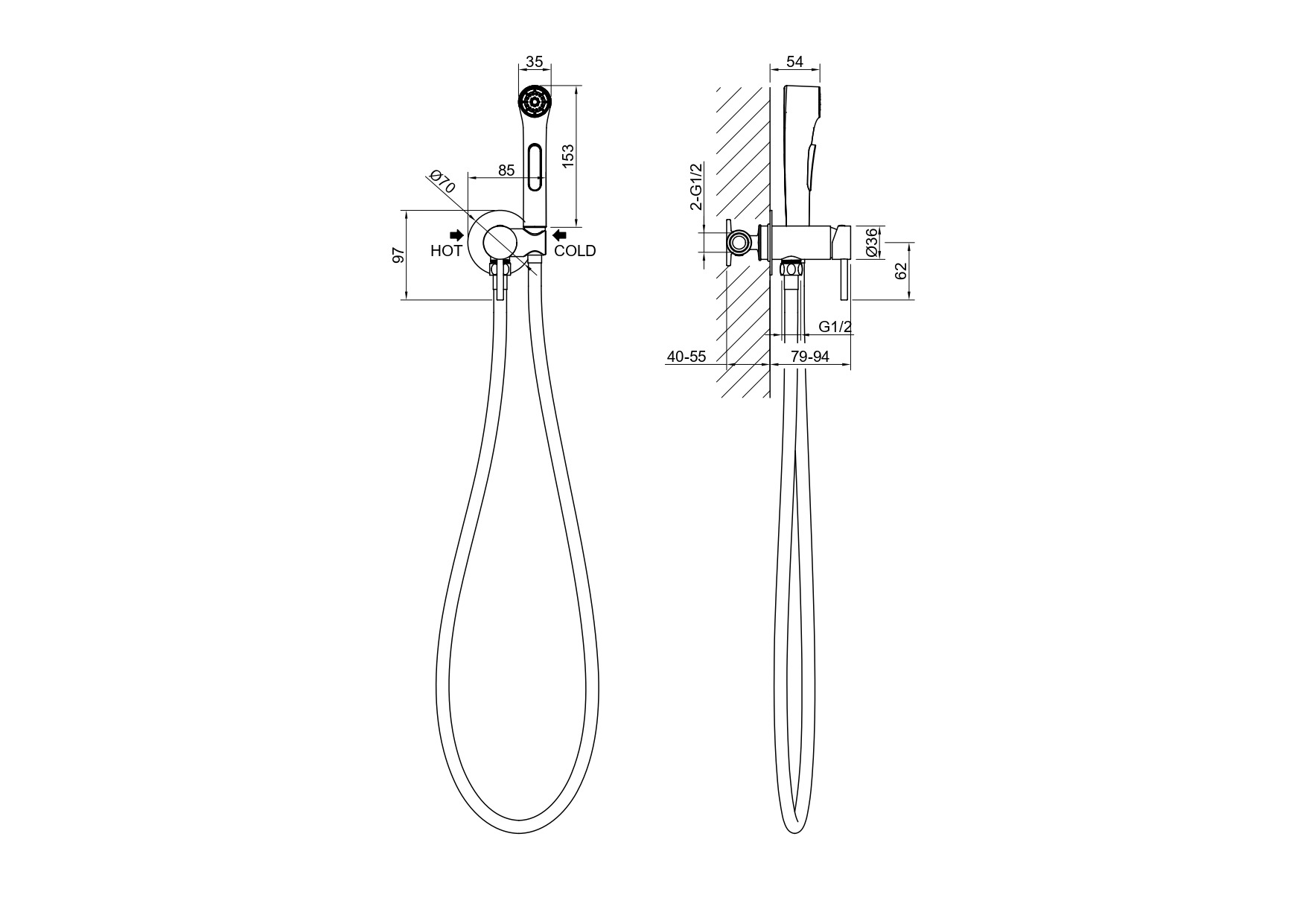 - Гигиеническая лейка оснащена нажимным механизмом для остановки потока воды