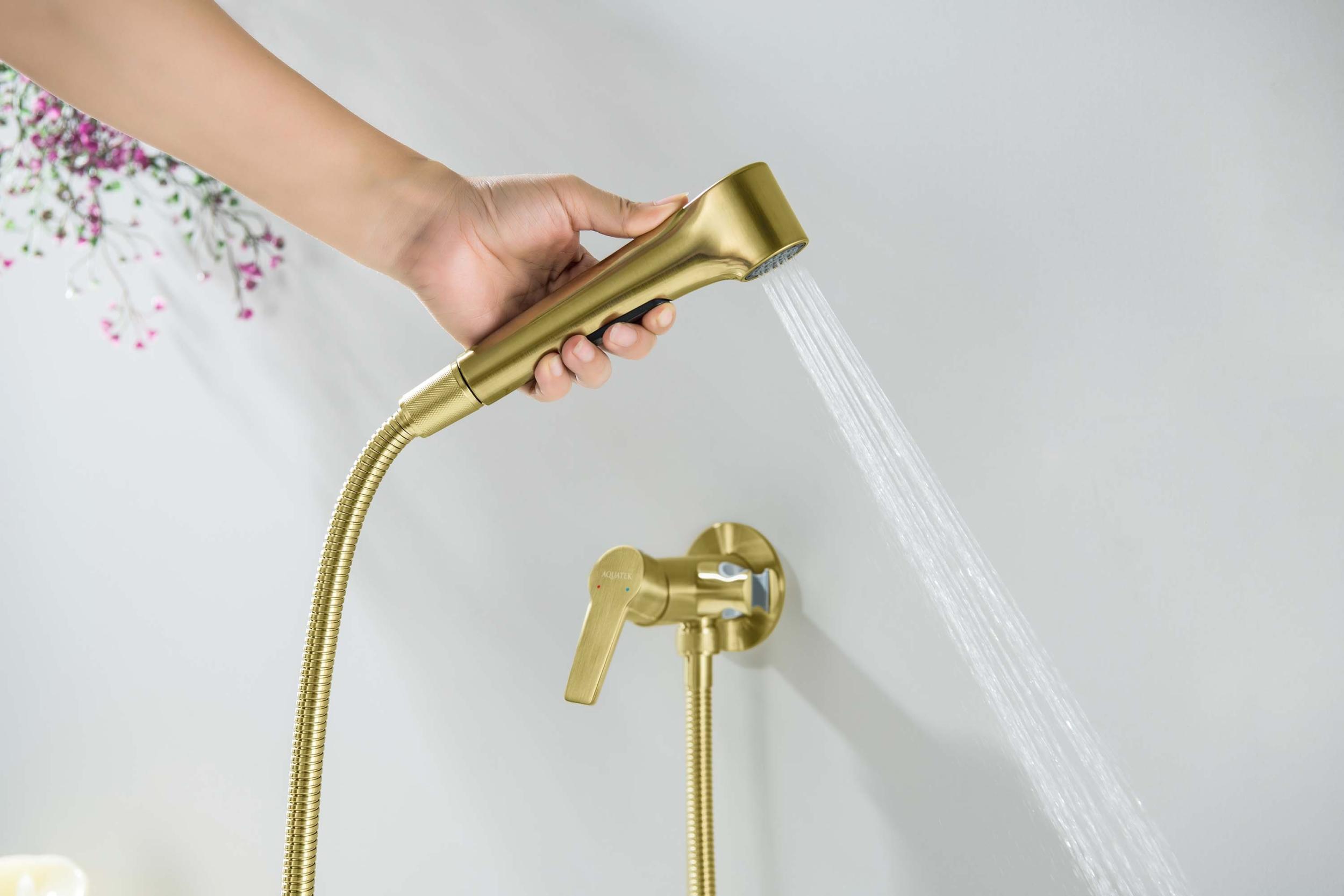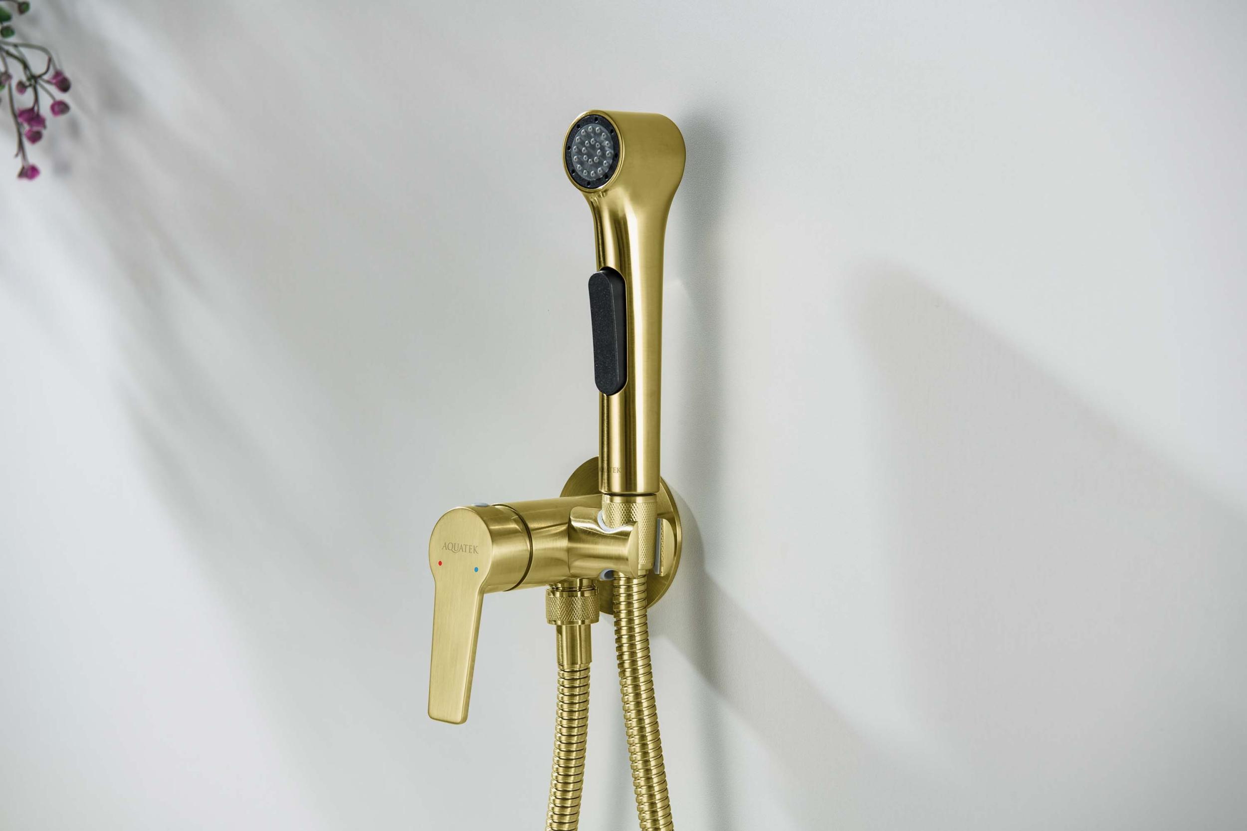 Набор для гигиенического душа Aquatek Лугано AQ1719BG (со скрытой частью) золото шлифованное
