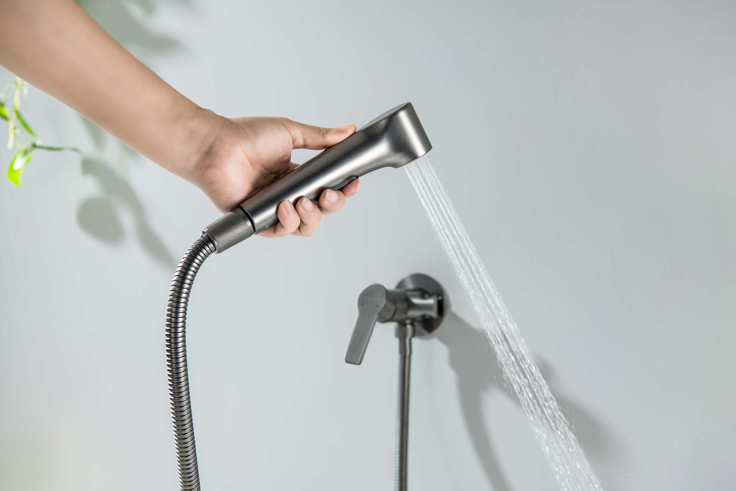 - Гигиеническая лейка оснащена нажимным механизмом для остановки потока воды