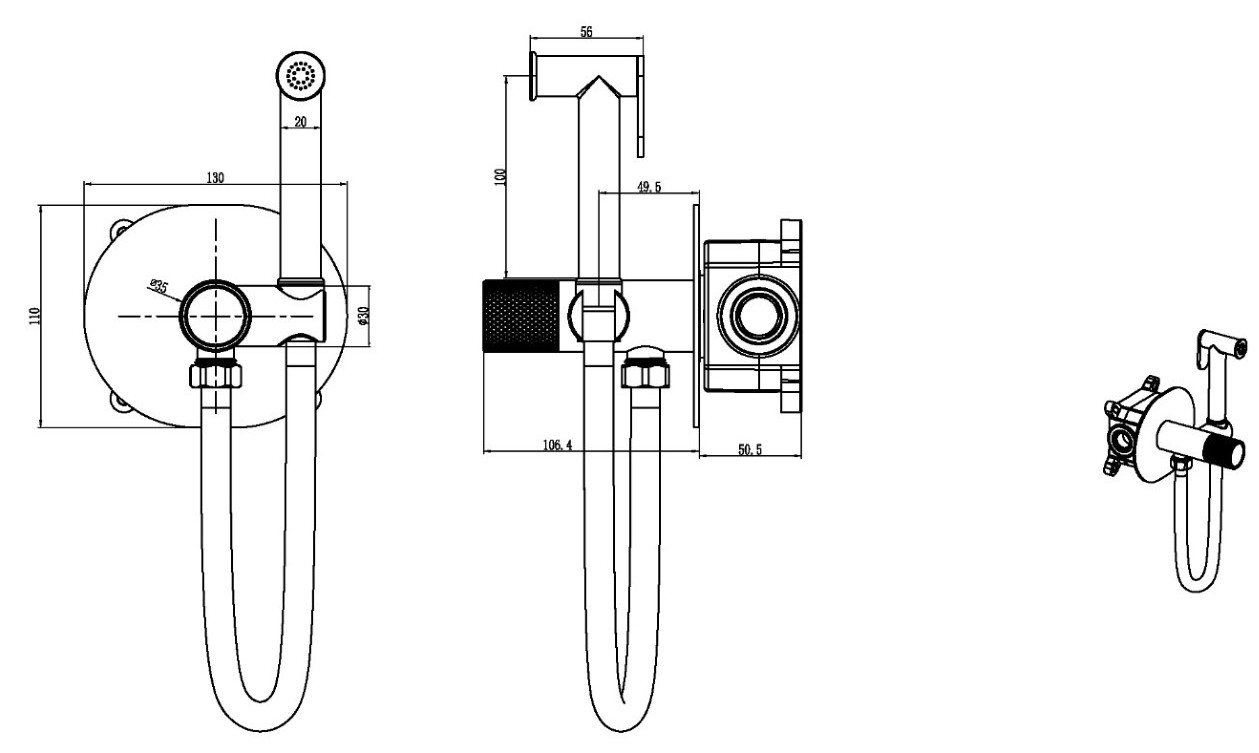 Набор для гигиенического душа Boheme Tech 157-SGM со скрытой частью, материал латунь, цвет графит глянец.