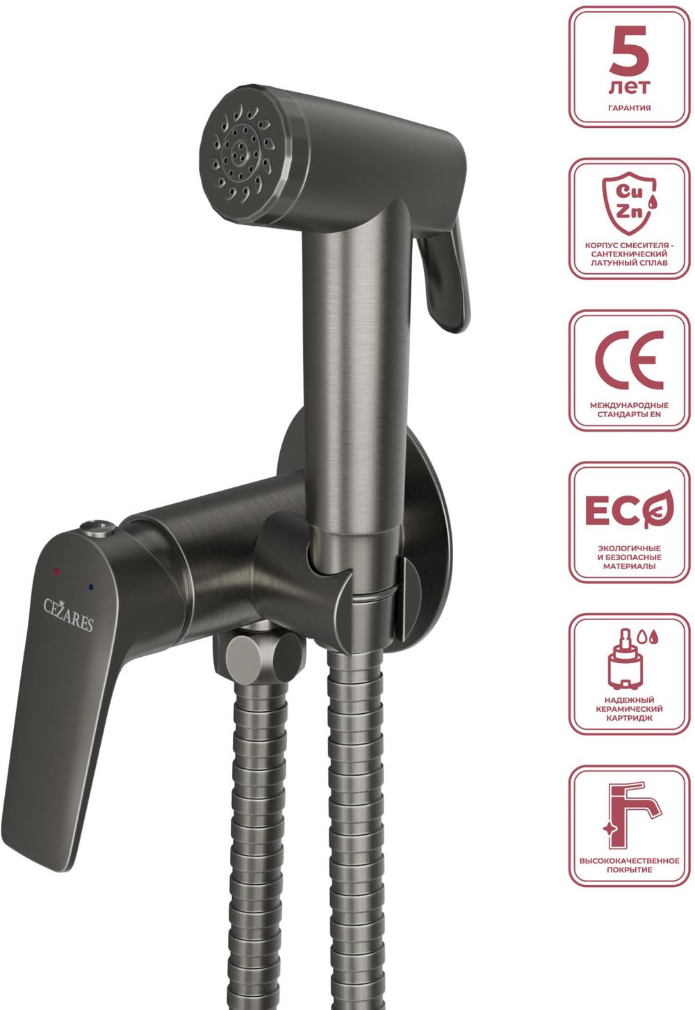 Набор для гигиенического душа Cezares LINER-DIF-GM, оружейная сталь