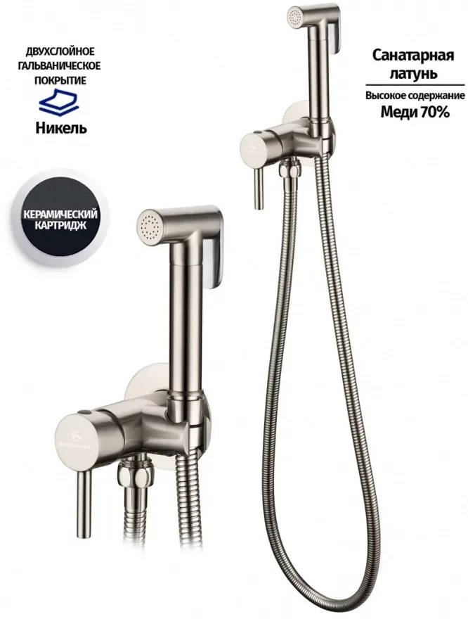 Набор для гигиенического душа Grocenberg GB001NK со скрытой частью, материал латунь, цвет никель.