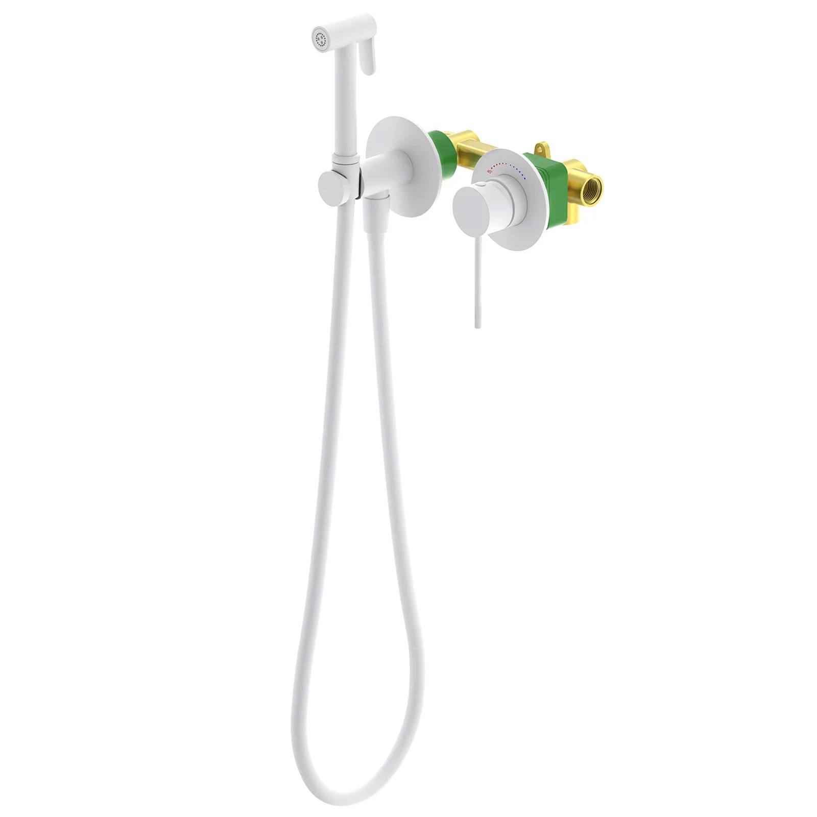 Встраиваемый смеситель с гигиеническим душем Timo Saona 2339 предназначен для монтажа в твердой или полой стене. Термокартридж с защитой от ожогов ограничивает максимальную температуру воды 45 С° повышая комфортность и безопасность использования. Основной задачей данной модели является: экономия места (установка чаши для биде занимает достаточно много места и к тому же затратнее). Все коммуникации, крепления и механизмы спрятаны в стену и закрыты декоративными накладками, снаружи находится только рычаг управления смесителем и держатель гигиенической лейки с подключением шланга, такая модель отлично сочетается с инсталляцией для унитаза. Длины шланга 1,2 метра хватает для решения гигиенических задач. Можно также использовать например, для мытья собаки после прогулки или наполнения ведра воды и т.д.