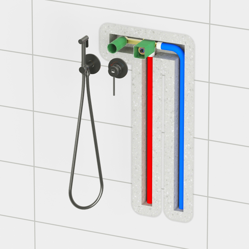 Встраиваемый смеситель с гигиеническим душем Timo Saona 2339 предназначен для монтажа в твердой или полой стене. Термокартридж с защитой от ожогов ограничивает максимальную температуру воды 45 С° повышая комфортность и безопасность использования. Основной задачей данной модели является: экономия места (установка чаши для биде занимает достаточно много места и к тому же затратнее). Все коммуникации, крепления и механизмы спрятаны в стену и закрыты декоративными накладками, снаружи находится только рычаг управления смесителем и держатель гигиенической лейки с подключением шланга, такая модель отлично сочетается с инсталляцией для унитаза. Длины шланга 1,2 метра хватает для решения гигиенических задач. Можно также использовать например, для мытья собаки после прогулки или наполнения ведра воды и т.д.