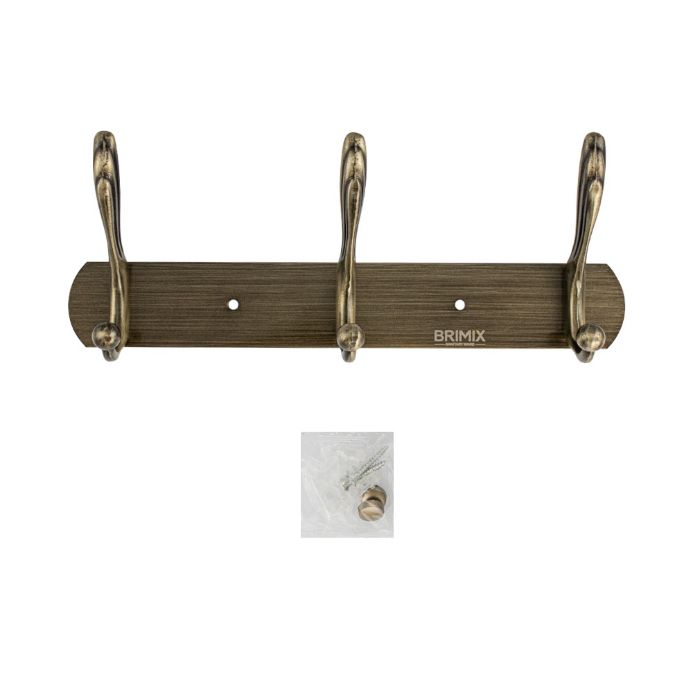 Вешалка - держатель для принадлежностей металлический, с тремя двойными крючками. Изготовлен из прочной нержавеющей стали марки SUS 304 с бронзовым покрытием, которое придает безупречный стильный вид и долговечность. Бронзовое покрытие очень стойко переносит истирания и обеспечивает долгий срок службы изделия. На держателе с легкостью можно размещать вещи для сушки или вешать, как полотенца, так и одежду перед походом в душ. Идеально подойдет не только для ванной, но и для кухни, а также для дачи или гаража - при необходимости на держатель можно вешать любые предметы. Изделие крепится к стене с помощью дюбелей и саморезов (входят в комплект).
