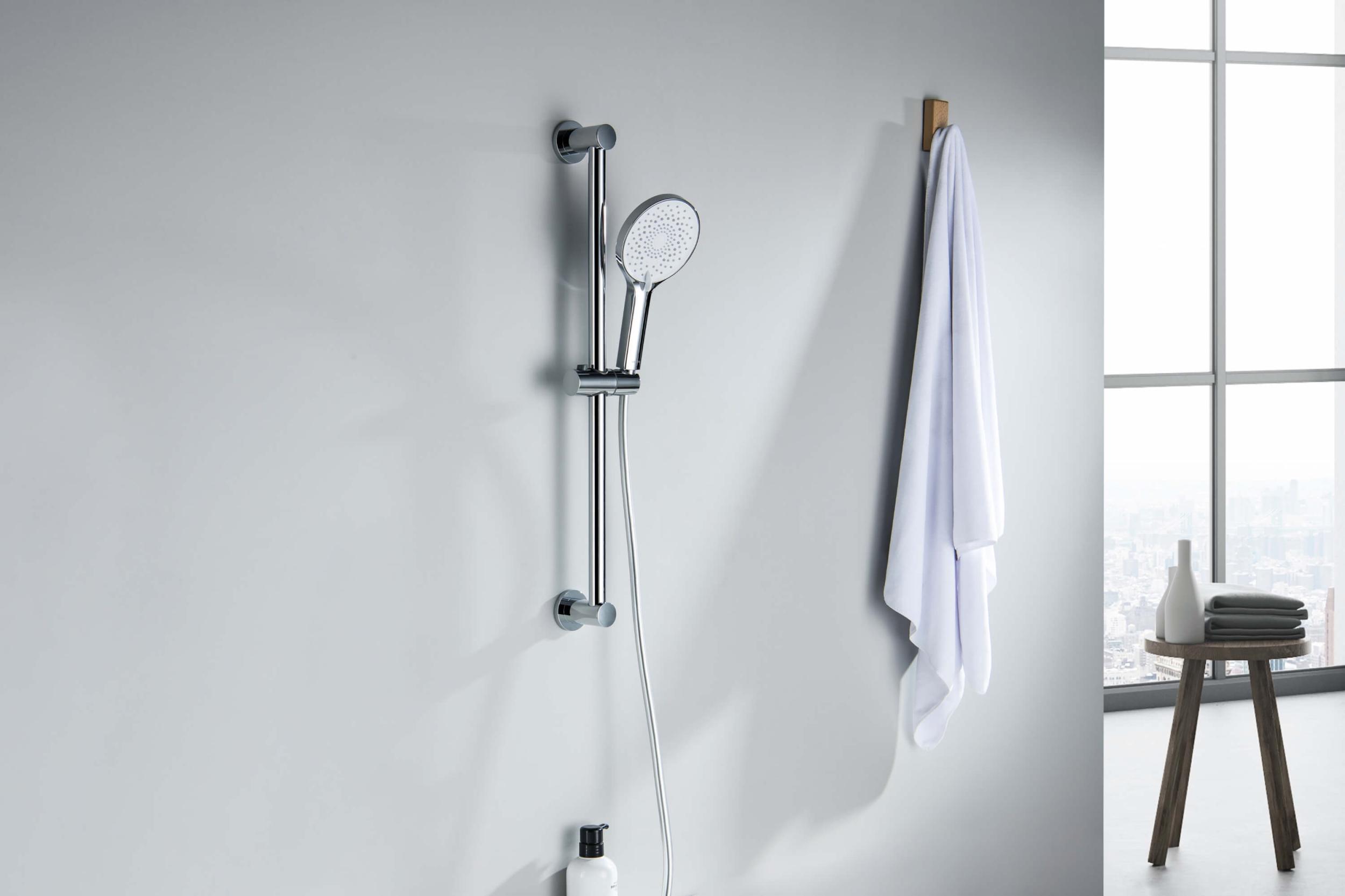 - Душевой гарнитур: душевая стойка, лейка 3jet, шланг