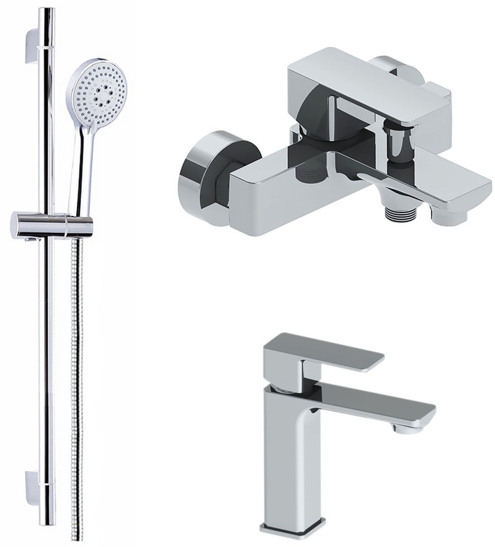 Набор смесителей 3 в 1 для душа Azario Cadeo: смеситель для раковины + смеситель для ванны + душевой гарнитур, материал латунь, цвет хром.