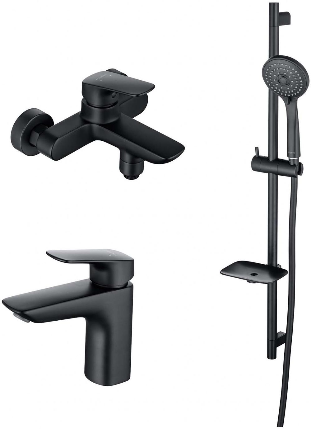 Набор смесителей 3 в 1 для ванны с коротким изливом Aquatek Вега AQ1030MB, чёрный матовый